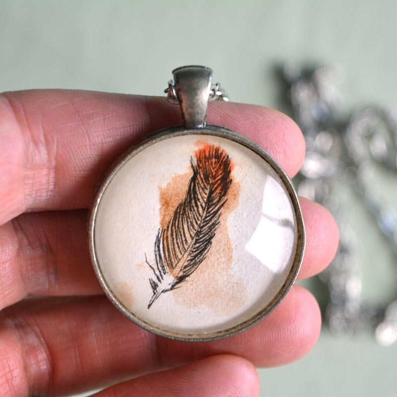 Hand painted cabochon pendant.